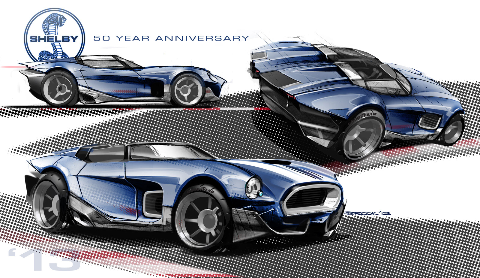 As an ongoing comission for a redesign of the the Shelby Cobra for a limited production run, shown is one of our design proposals. The selected proposal (not shown) is currently in the process of getting built and plans to be launched at SEMA 2016. This car is based on Corvette platform with a 500hp Ford V8 powerplant. A limited run of approximatelt 10 cars will be built per year.