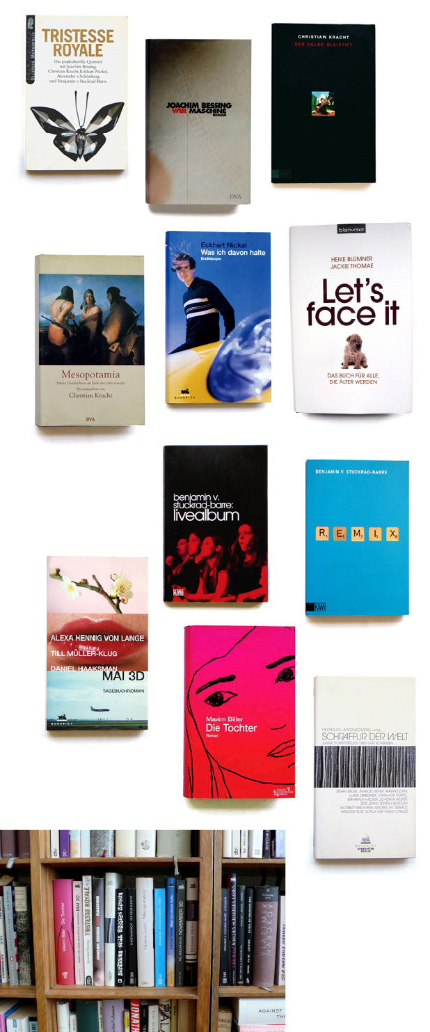 Selected book cover designs, mostly for authors of the German literature movement "Pop Literatur".