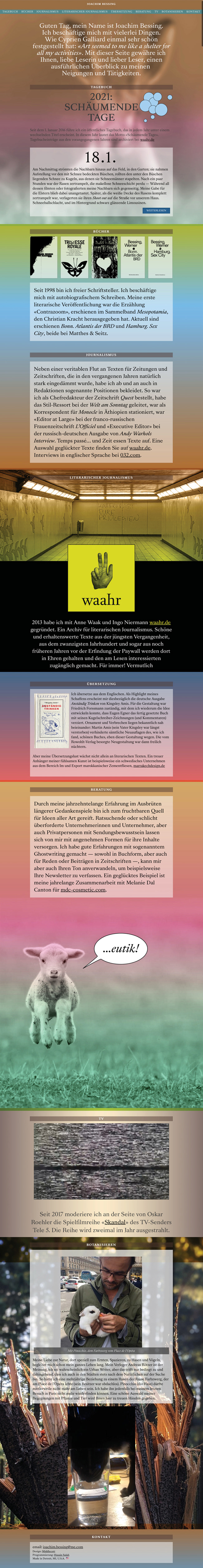 Website design for the German author Joachim Bessing.