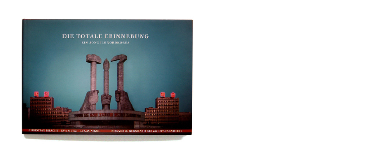 Book design. Eva Munz, Christian Kracht and Lukas Nikol show a window view of the gigantic 3D production of Kim Jong Il, who wrote the nation's statistics and authored its film script. Photography by Eva Munz and Lukas Nikol, introduction by Christian Kracht, with quotations from Kim Jong-Il's book "The Art of Cinema". Published in America by Feral House and in Germany by Rogner & Bernhard bei Zweitausendeins. 2006.