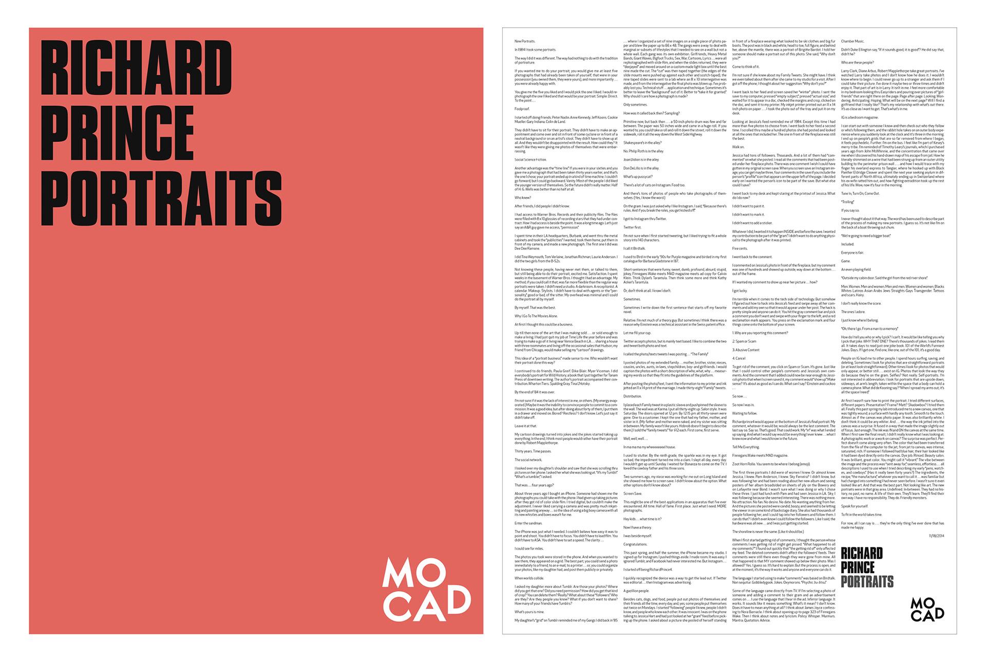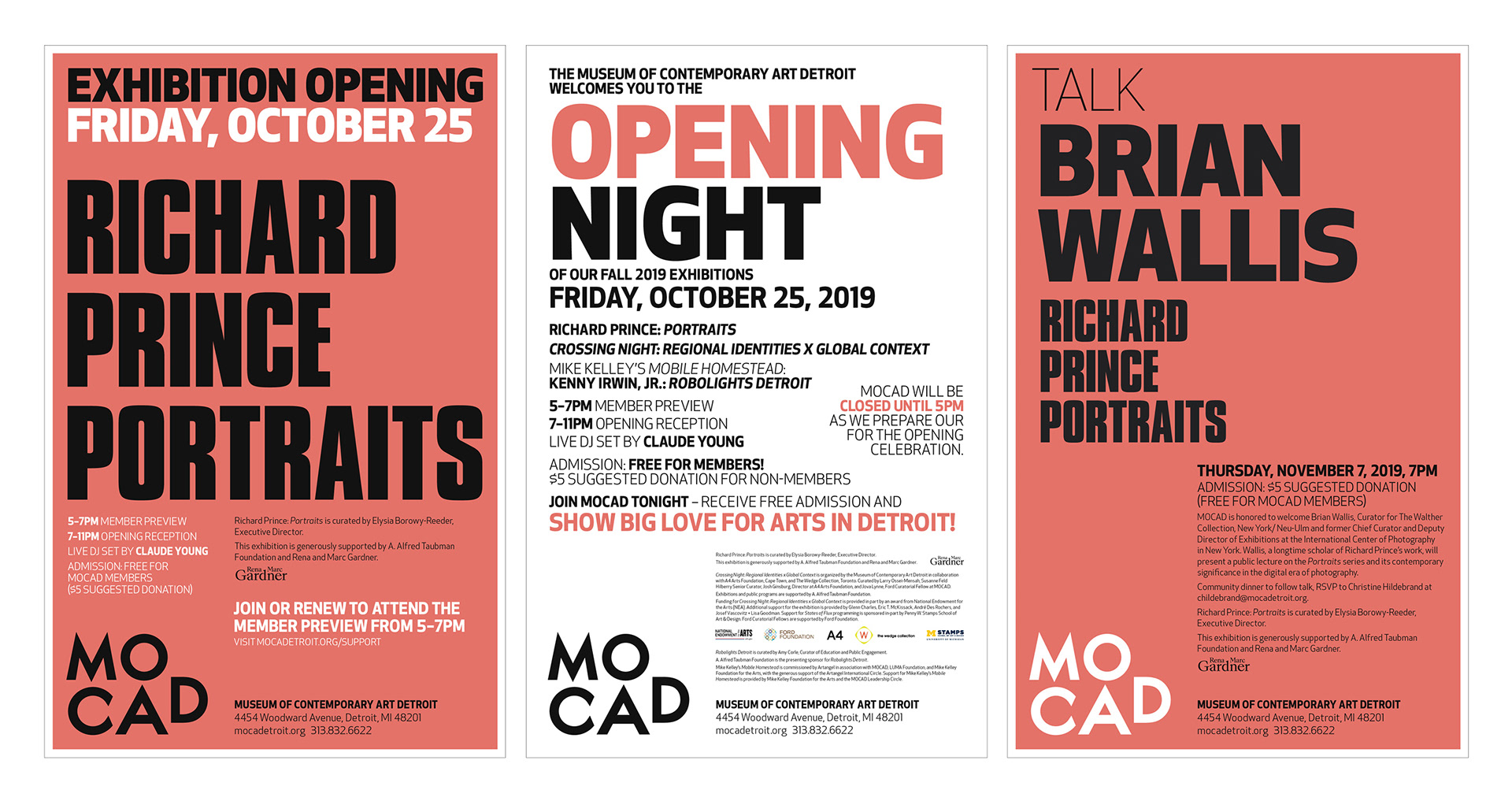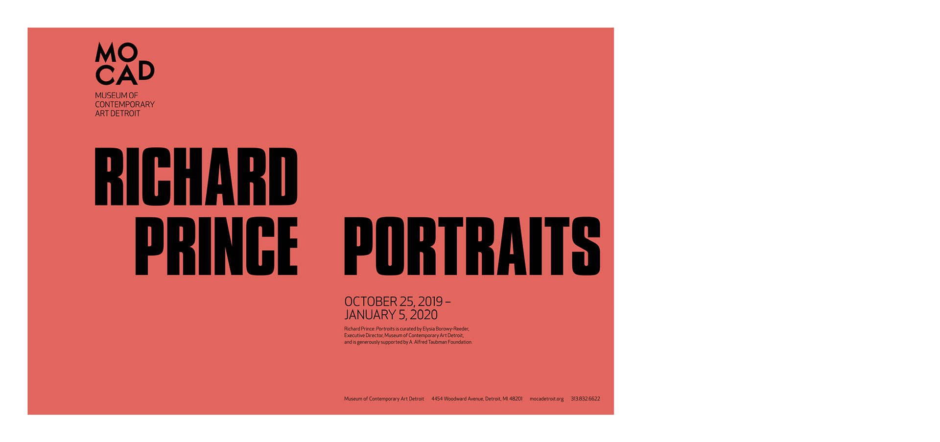 Design of the exhibition identity and promotional material for Richard Prince: Portraits at MOCAD