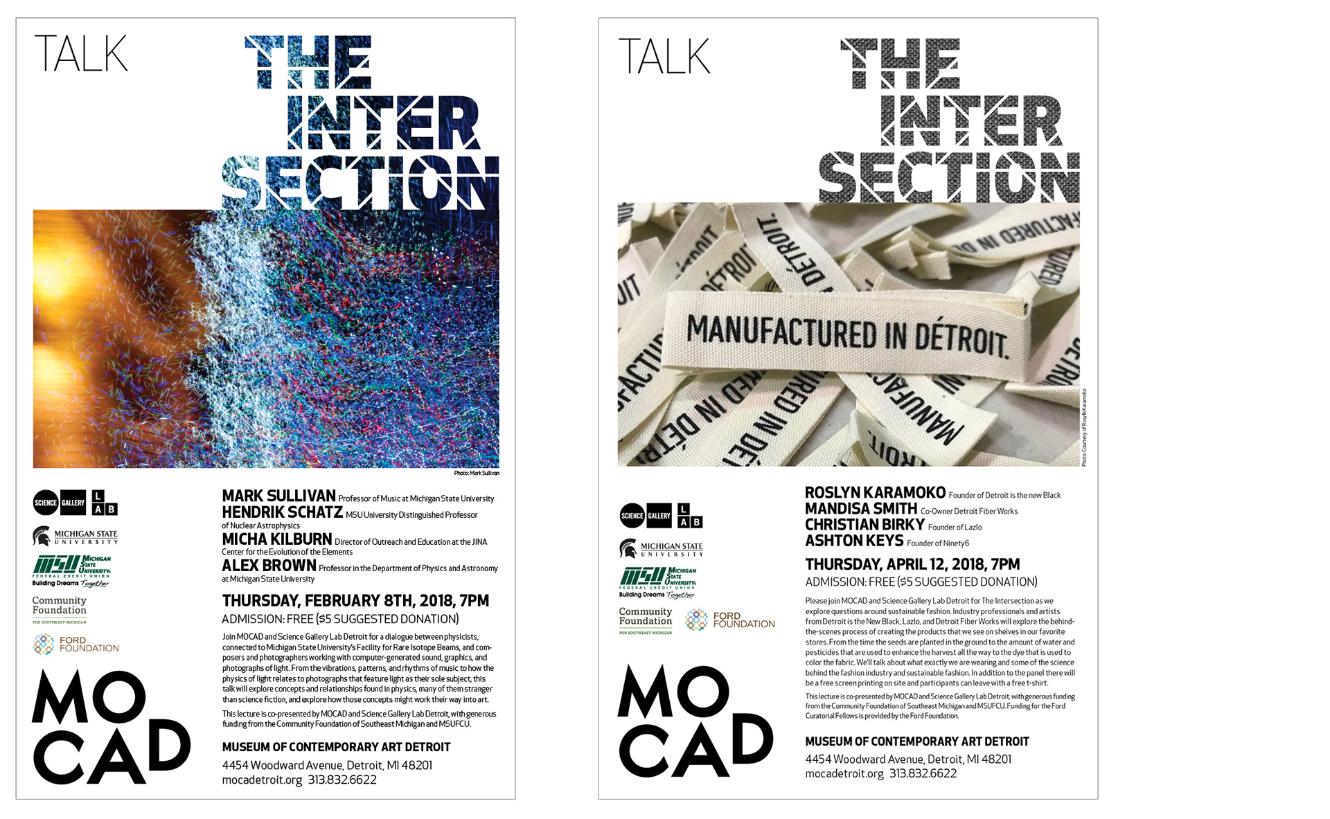 Logo and posters for "The Intersection", a lecture series of MOCAD, Museum of Contemporary Art Detroit.