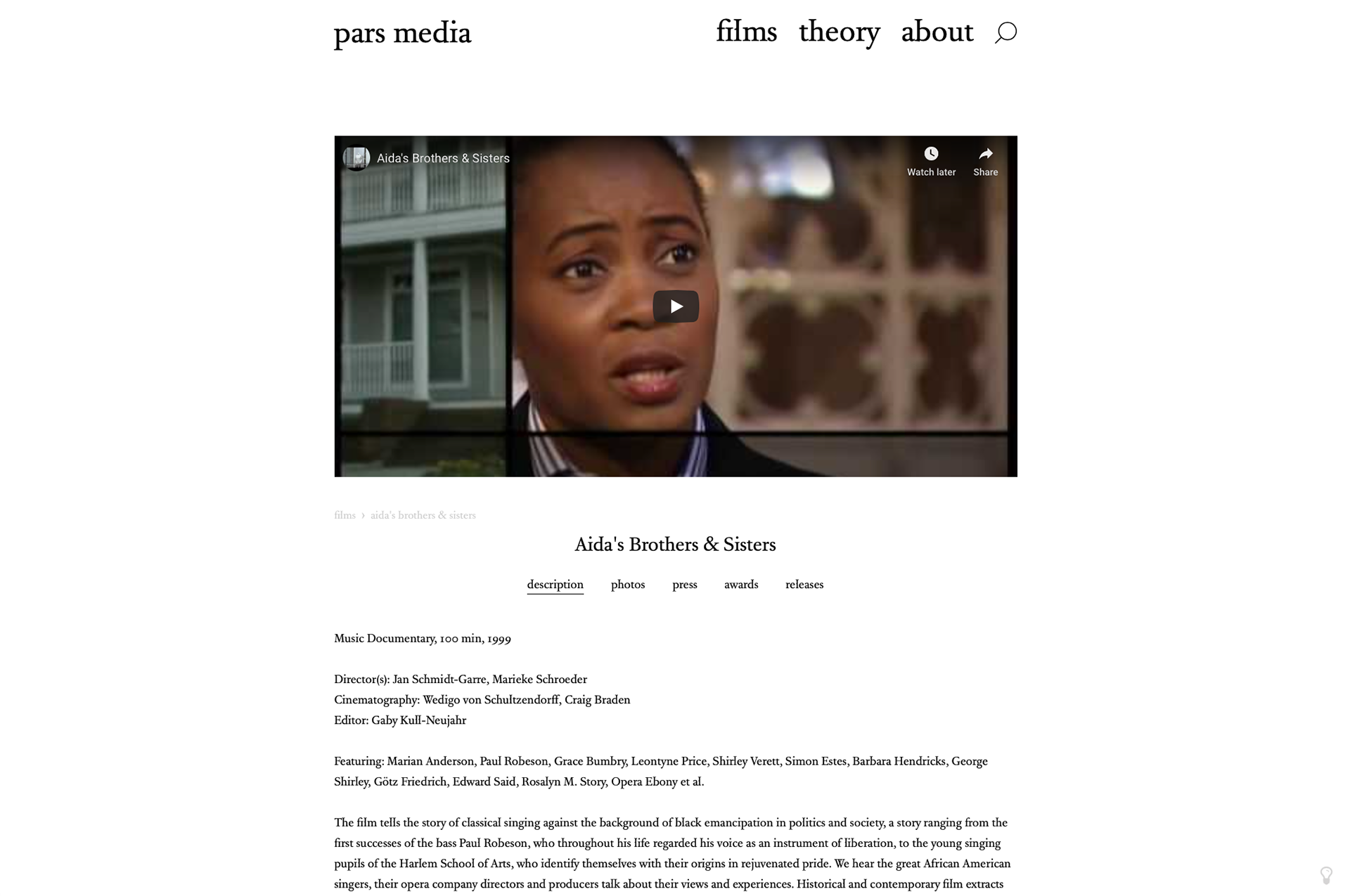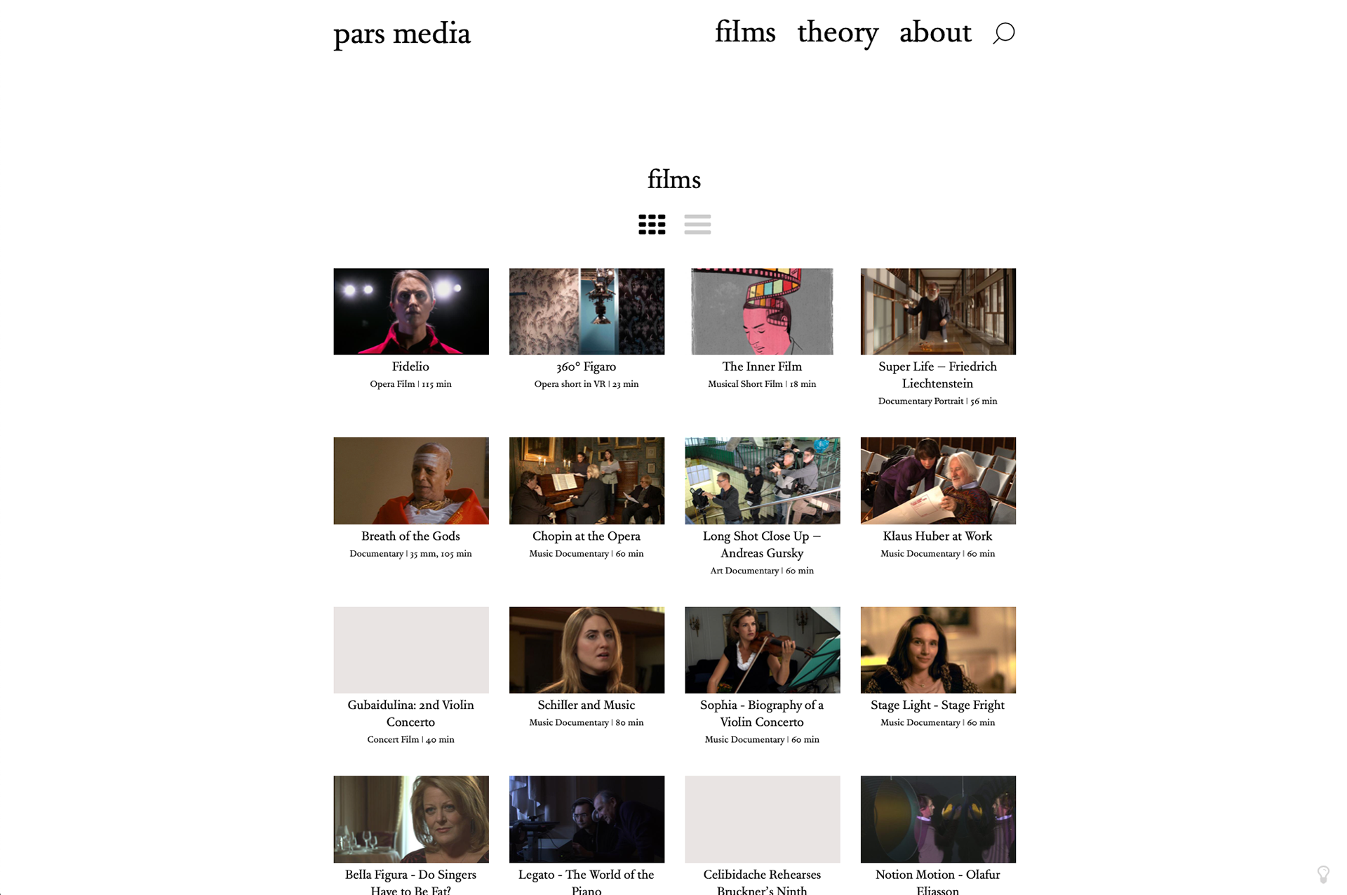 Website design for Pars Media, a production company specializing in documentary and feature films on classical music, dance, and the fine arts.