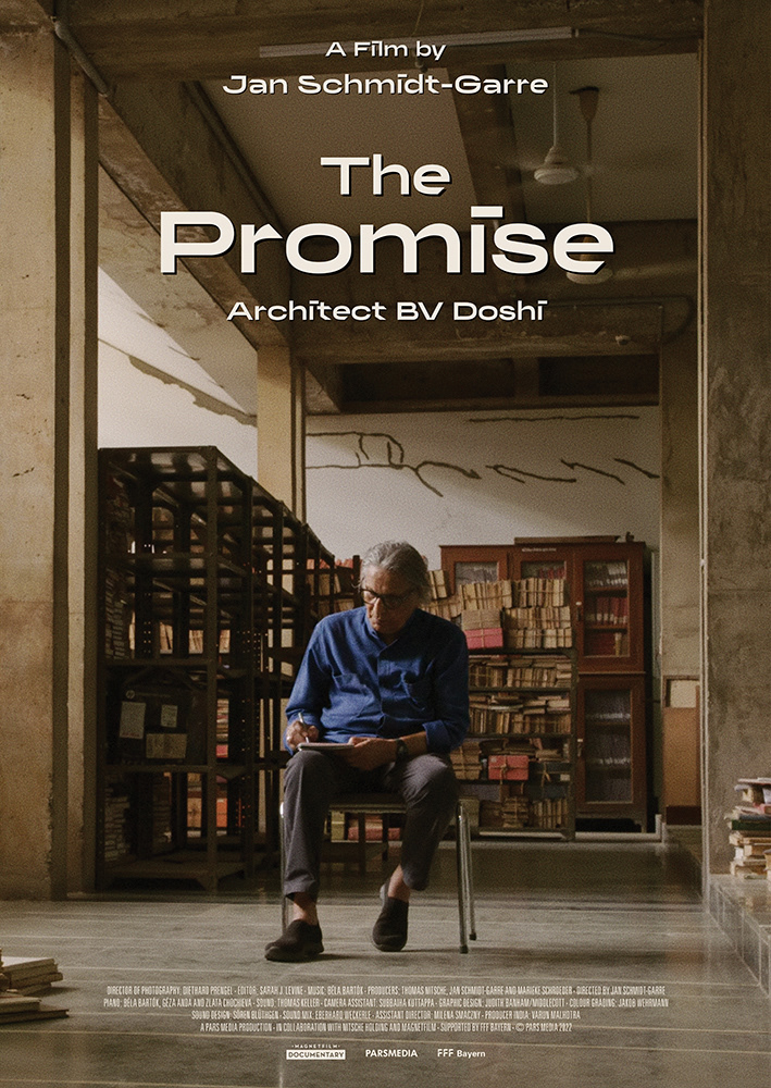 Posters and title design for the documentary film The Promise - Architect BV Doshi by Jan Schmidt-Garre