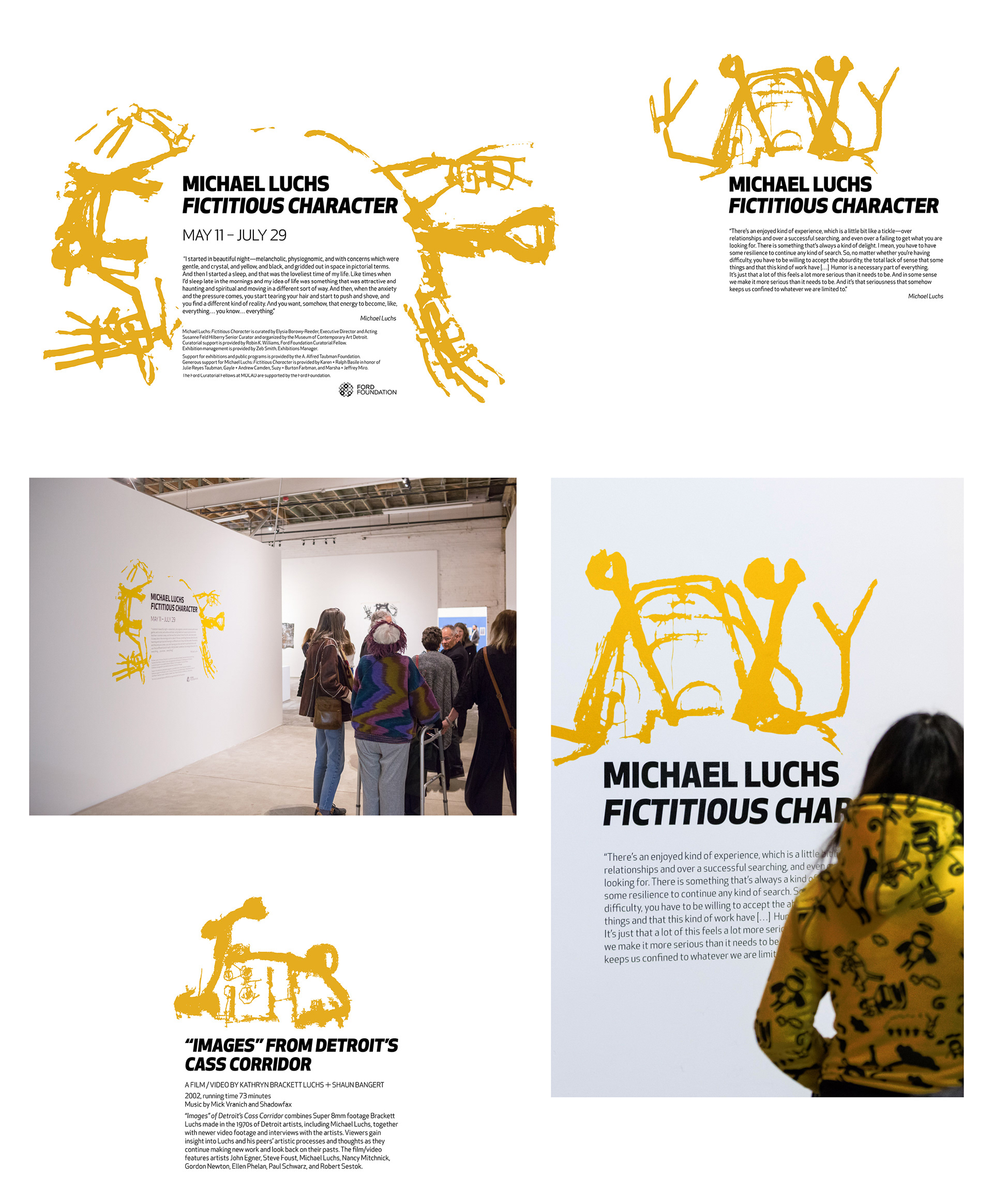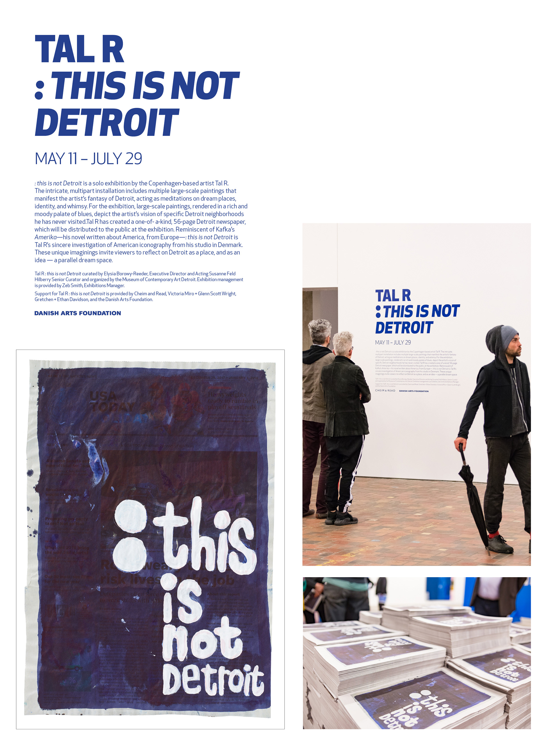 Design for the exhibitions "Tal R :This is not Detroit" and Michael Luchs "Fictitious Character", including a newspaper for Tal R. At MOCAD, Museum of Contemporary Art Detroit