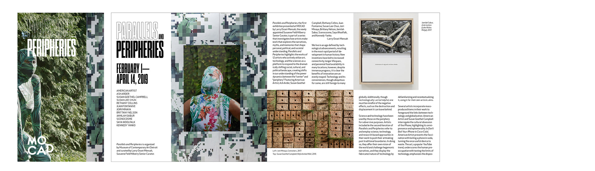 Graphics for the Spring 2019 shows at Museum of Contemporary Art Detroit