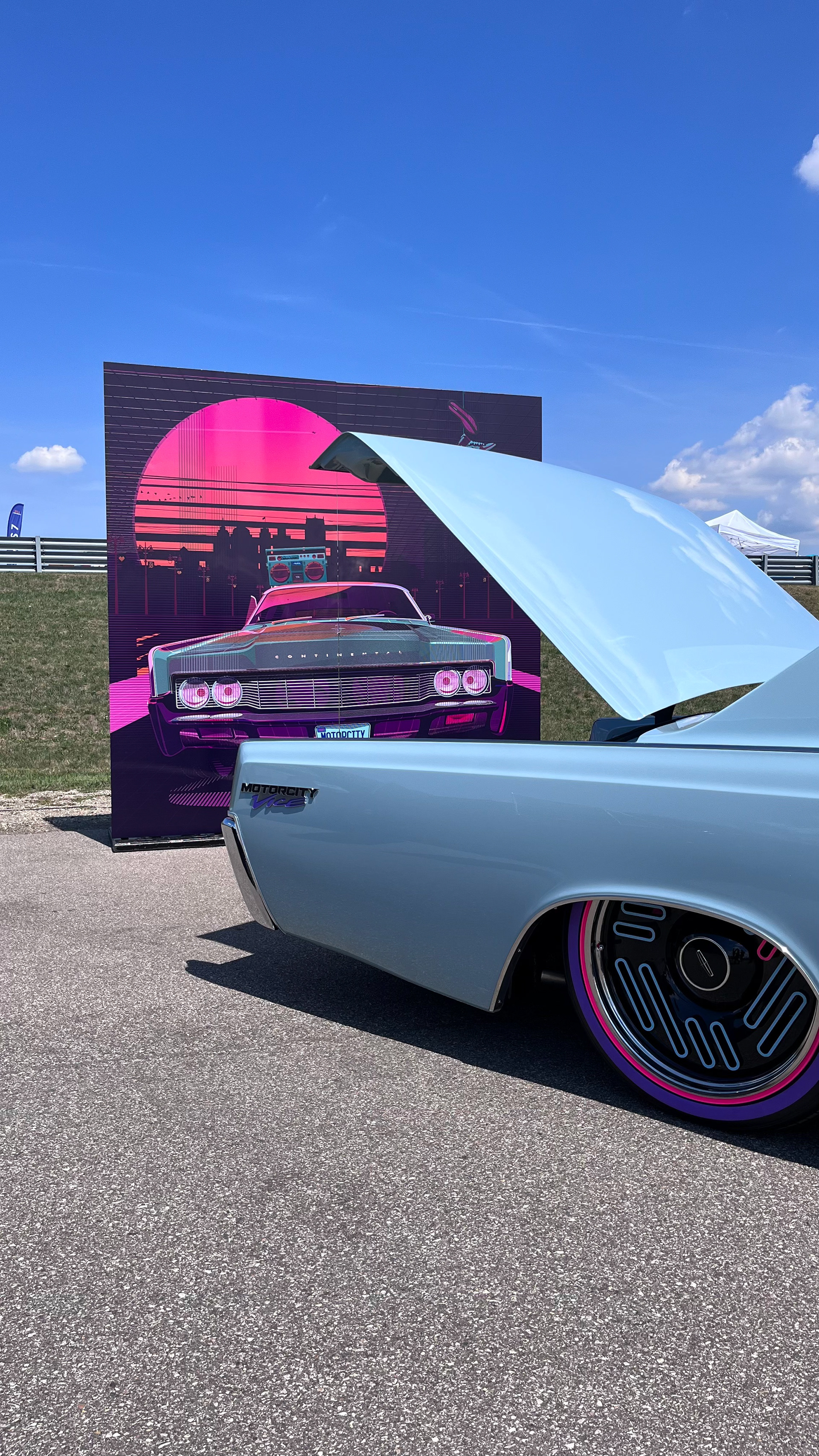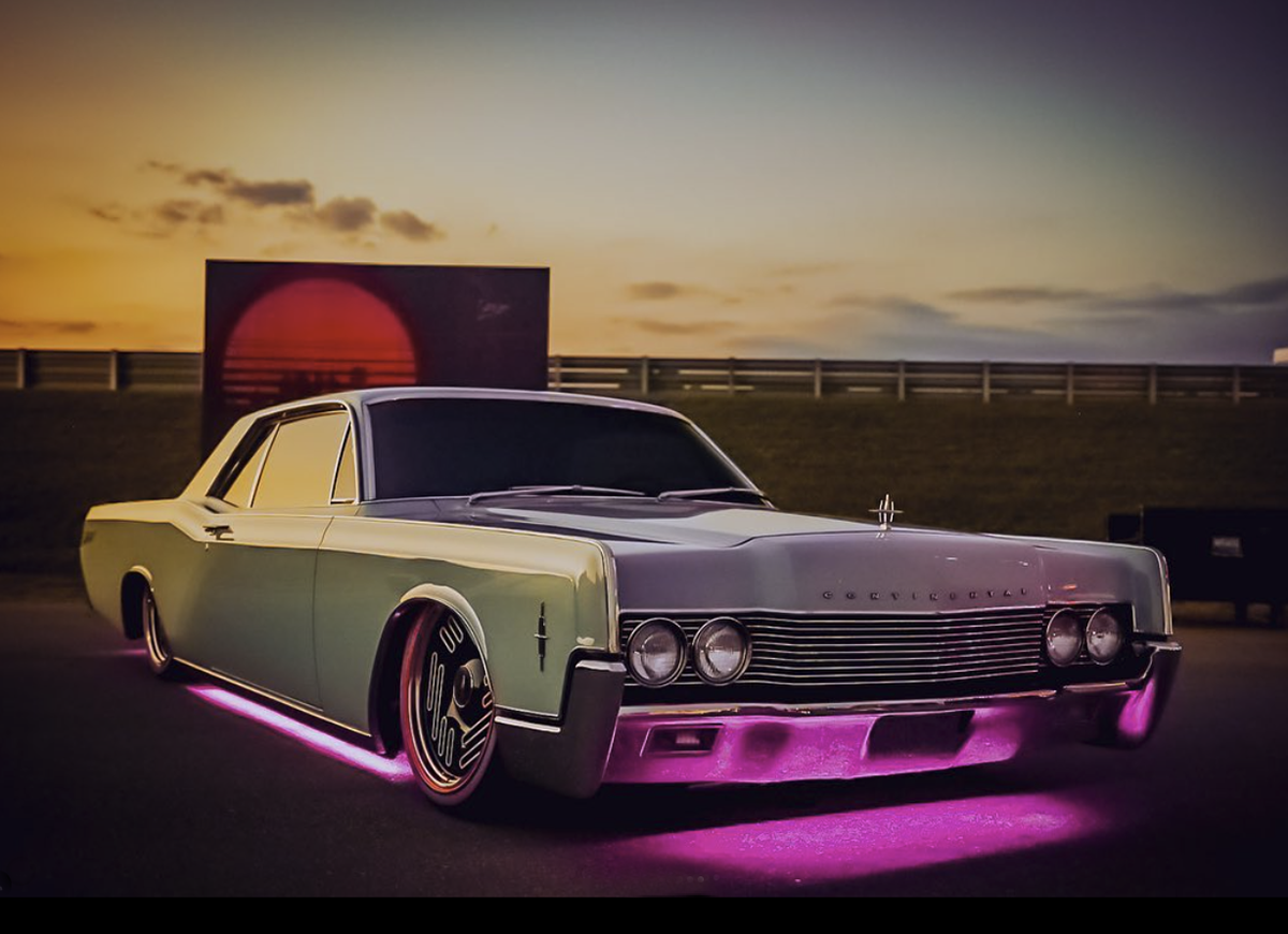 Custom '66 Lincoln Continental we designed for the Lincoln 100-year anniversary. The car was built by Mobstteel, Detroit Steel Wheels, and was designed by Brook from Middlecott who designed the overall concept including the branding, wheels, graphics, and artwork.