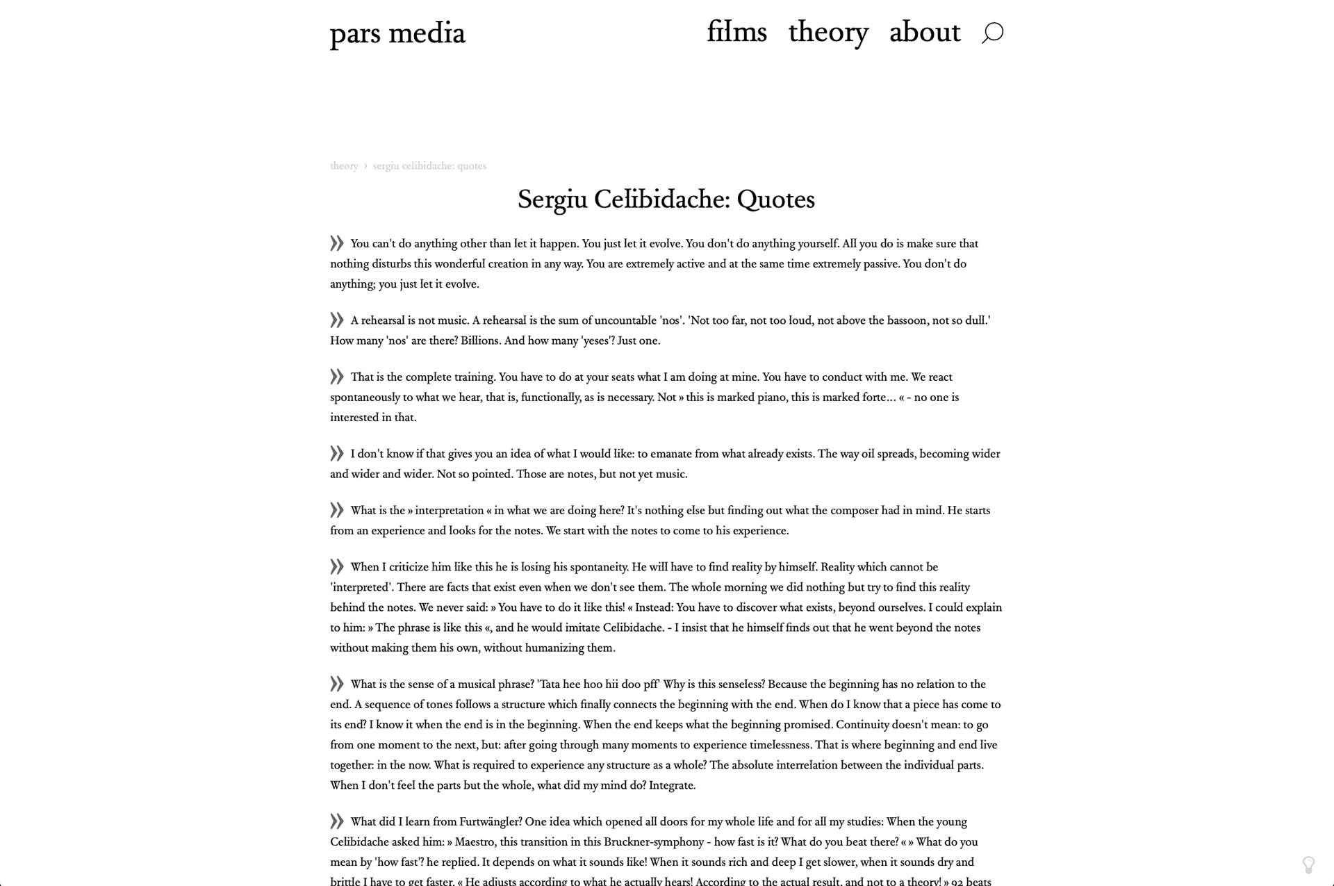 Website design for Pars Media, a production company specializing in documentary and feature films on classical music, dance, and the fine arts.